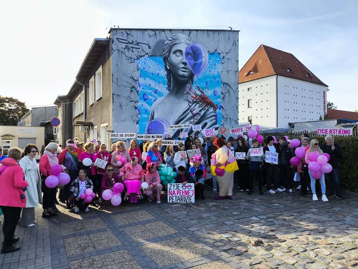 Naszym celem jest podniesienie poziomu wiedzy na temat profilaktyki raka piersi, jak również wsparcie i budowanie silnej różowej więzi. Od 3 lat idziemy więc w Koszalinie, z inicjatywy Magdy z naszego zarządu, która jest koordynatorką Marszu Różowej Wstążki w naszym mieście, w radosnym pochodzie, by zwrócić uwagę na zagrożenie rakiem piersi u kobiet, ale też u mężczyzn. Za ten edukacyjno-profilaktyczny Marsz nasza Fundacja w Konkursie Zachodniopomorski Lider NGO w 2023 otrzymała nagrodę w kategorii „Organizacje powstałe w latach 2021-2022”.