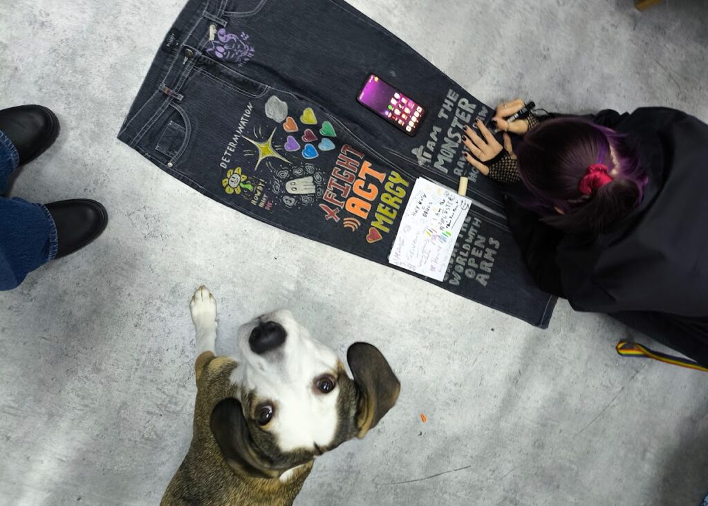 To było twórcze i swobodne popołudnie, pełne falowej energii: pracowałyśmy_liśmy z igłami, specjalnymi flamastrami i naszywkami, ale równie ważne były rozmowy, muzyka, śmiech i zwykła radość bycia razem.